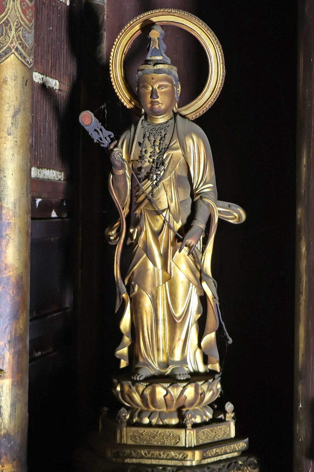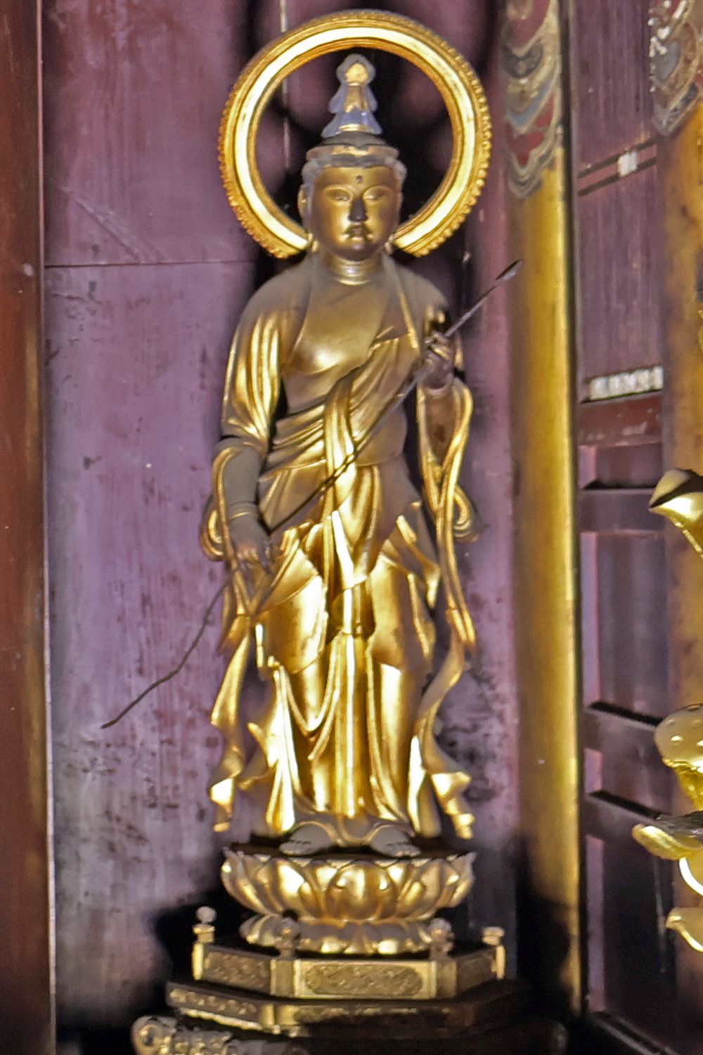 本尊は薬師瑠璃光如来。脇侍に日光菩薩と月光菩薩を従えています。本尊の開帳は33年に一度です。