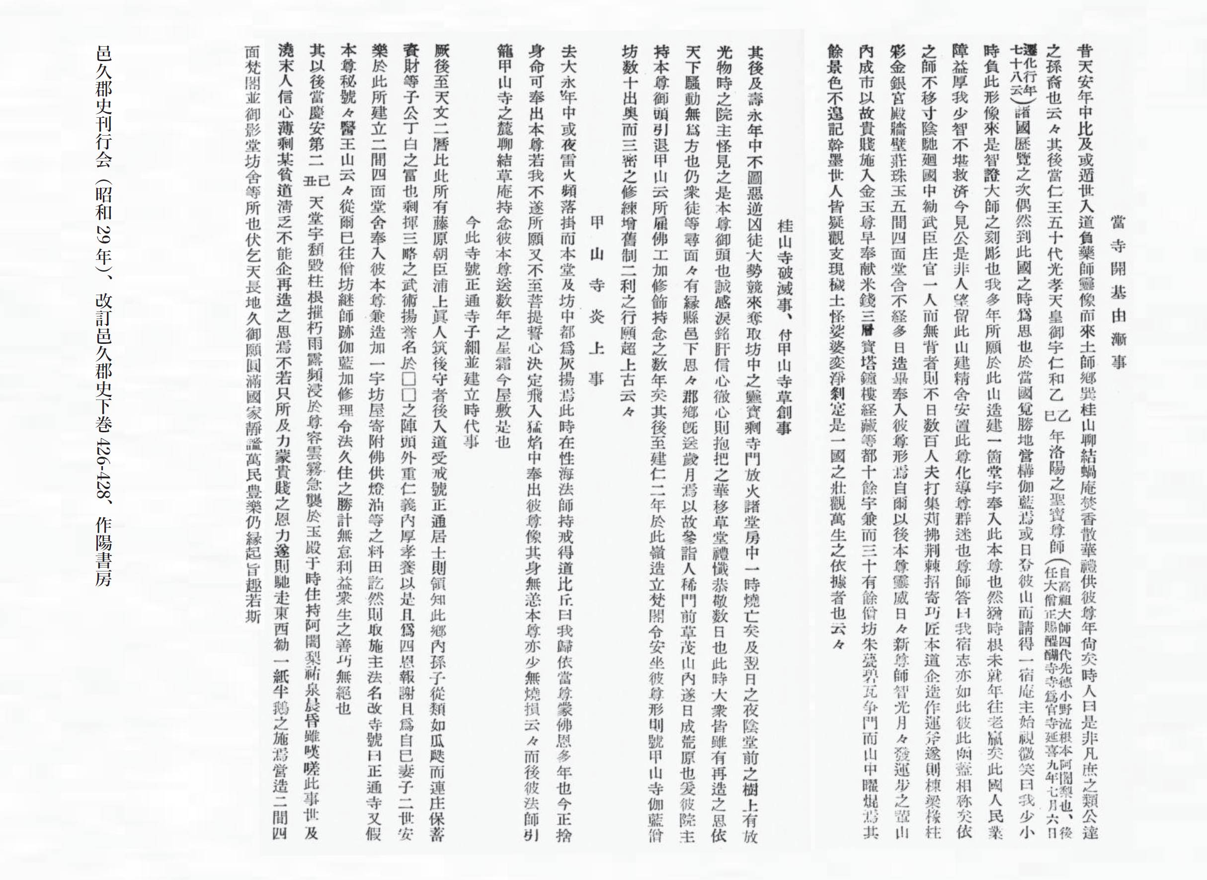 その後、仏師を雇い本尊を修善し、建仁二年(註、1202年)ついに梵閣(註、寺のこと)がたち、本尊を安置し甲山寺となづけた。伽藍や僧坊も十数棟建ち、僧侶たちの三密の修行(註、真言宗の修行)旧制三和の行願(註、大小二乗の戒律)は上古を超えるものであった。