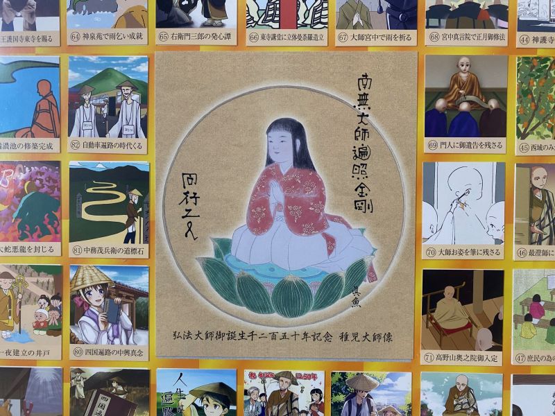 その中に弘法大師88記念カードという、お大師様の生涯や四国霊場との御縁をイラストにされたものがあり、正通寺の檀家様が寄贈してくださいました。