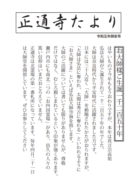 今回の記事は、毎年、夏と冬に作成している“正通寺たより”です。